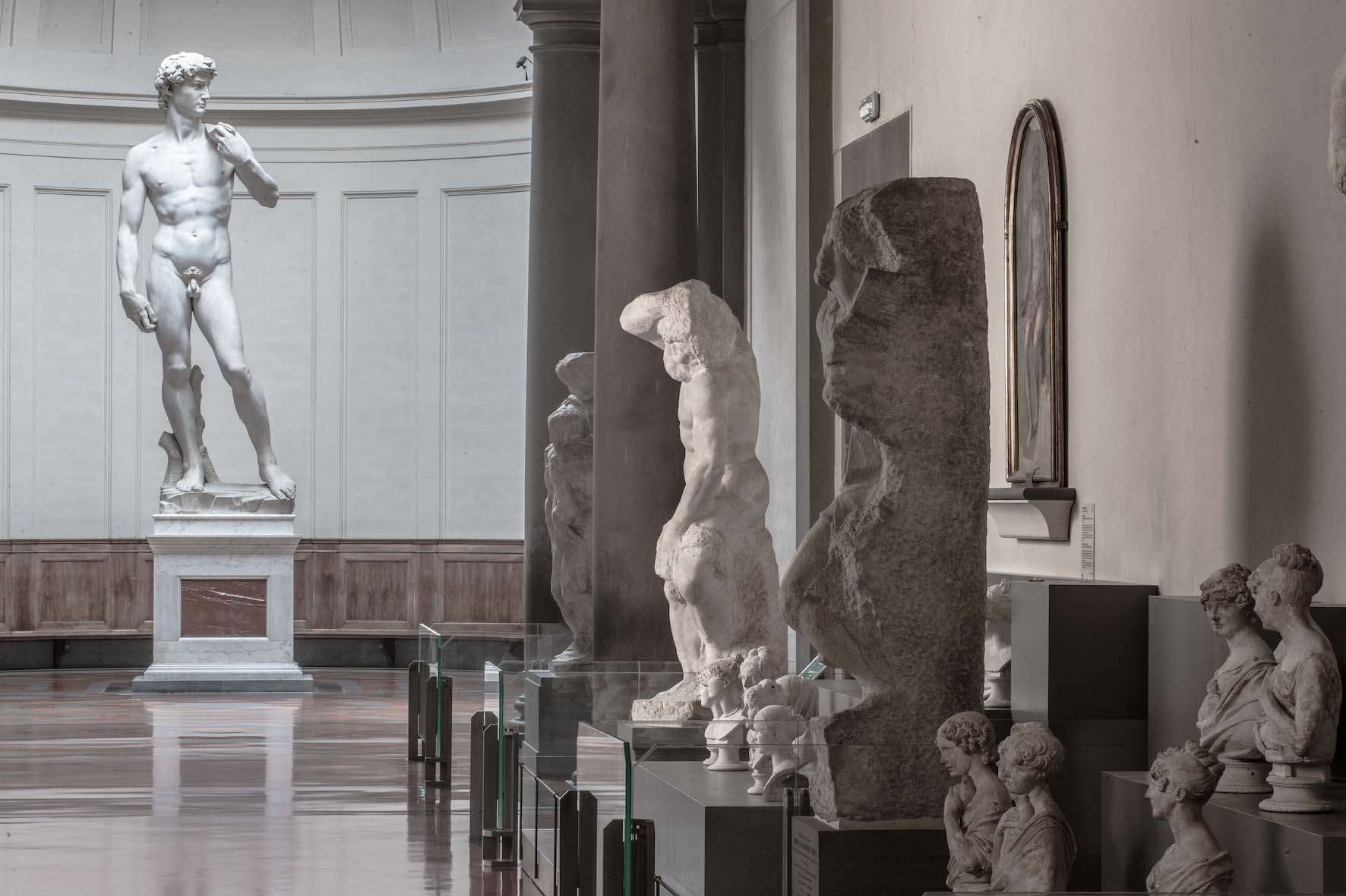 Большинство посетителей приходят в эту галерею по одной-единственной причине: чтобы увидеть великий опус Микеланджело «Давид» — синоним как Флоренции, так и эпохи Возрождения. Созданный из единственной «дефектной» плиты белого каррарского мрамора, Давид является вечным свидетельством непреходящего гения Микеланджело.