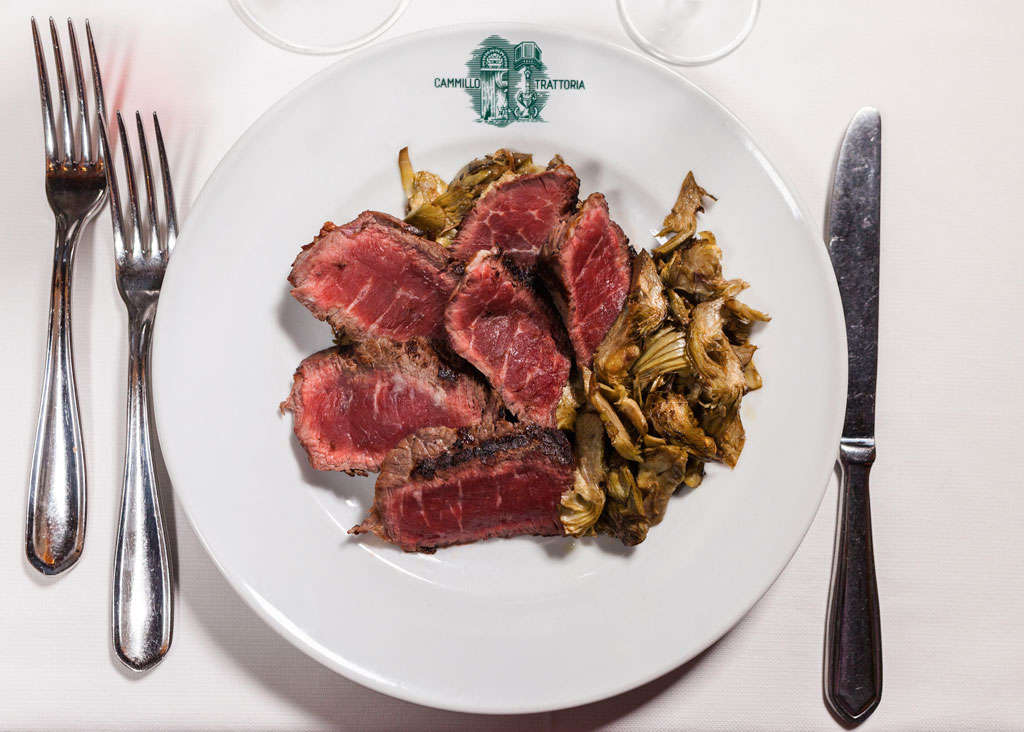 Cammillo был основан в 1945 году дедом Кьяры Масьеро, нынешним владельцем и шеф-поваром. Это шумное, многолюдное место, похожее на типичную тратторию, с прилавком, за которым стоят полки с бутылками, столы, покрытые белыми льняными скатертями, и белые стены, увешанные картинами в рамах. Звучит довольно идеально. Какая толпа? Расположенный на южном берегу Арно, всего в нескольких метрах от моста Понте Веккьо и дворца Питти, Камилло привлекает множество туристов. Это идеальное место, которое удобно посетить до/после посещения Галереи Уффици. Но есть и много флорентийских завсегдатаев; они, как правило, сидят в передней комнате, где могут поболтать с владельцами. Посетители тем временем рассредоточены между столиками в боковых комнатах с кирпичными сводами.