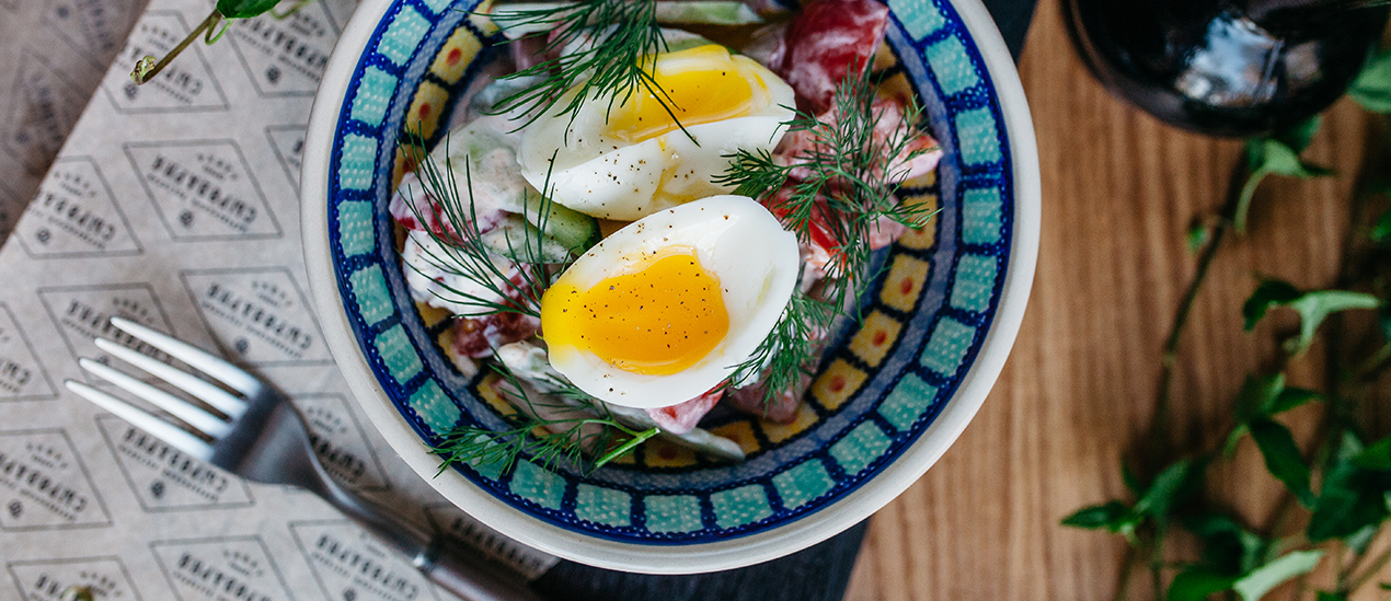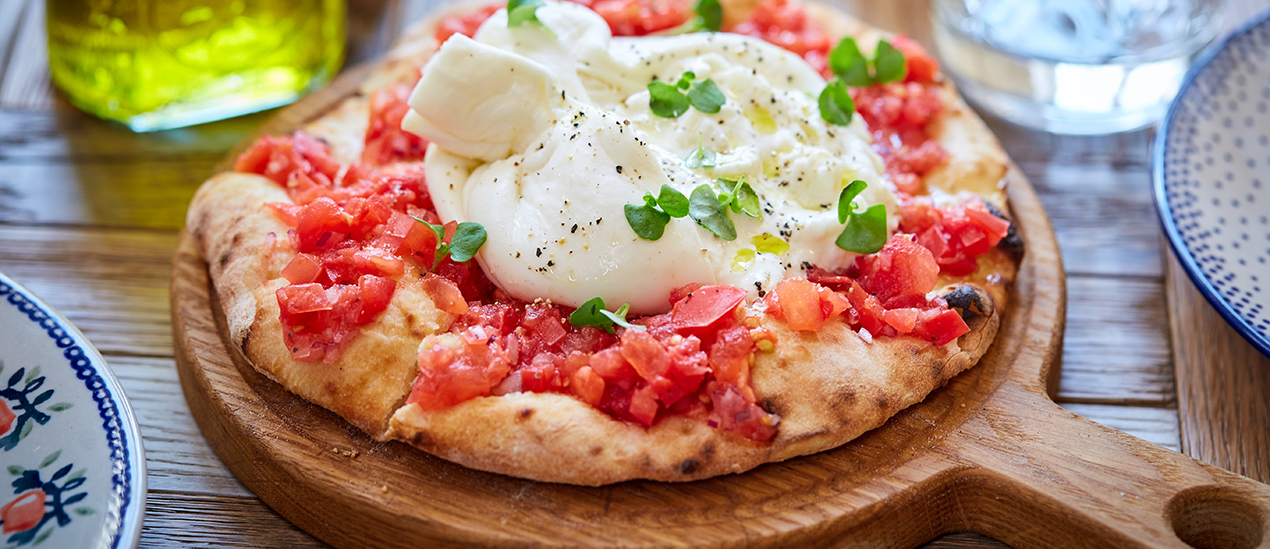 Внутри ресторана установлена дровяная печь, в которой каждый день выпекается свежайший хлеб, а также пицца на хрустящем тесте с разнообразными начинками. Меню заведения включает блюда европейской и итальянской кухни. Самый большой раздел посвящен сыру, который готовят на собственном производстве с акцентом на мягкие сорта.